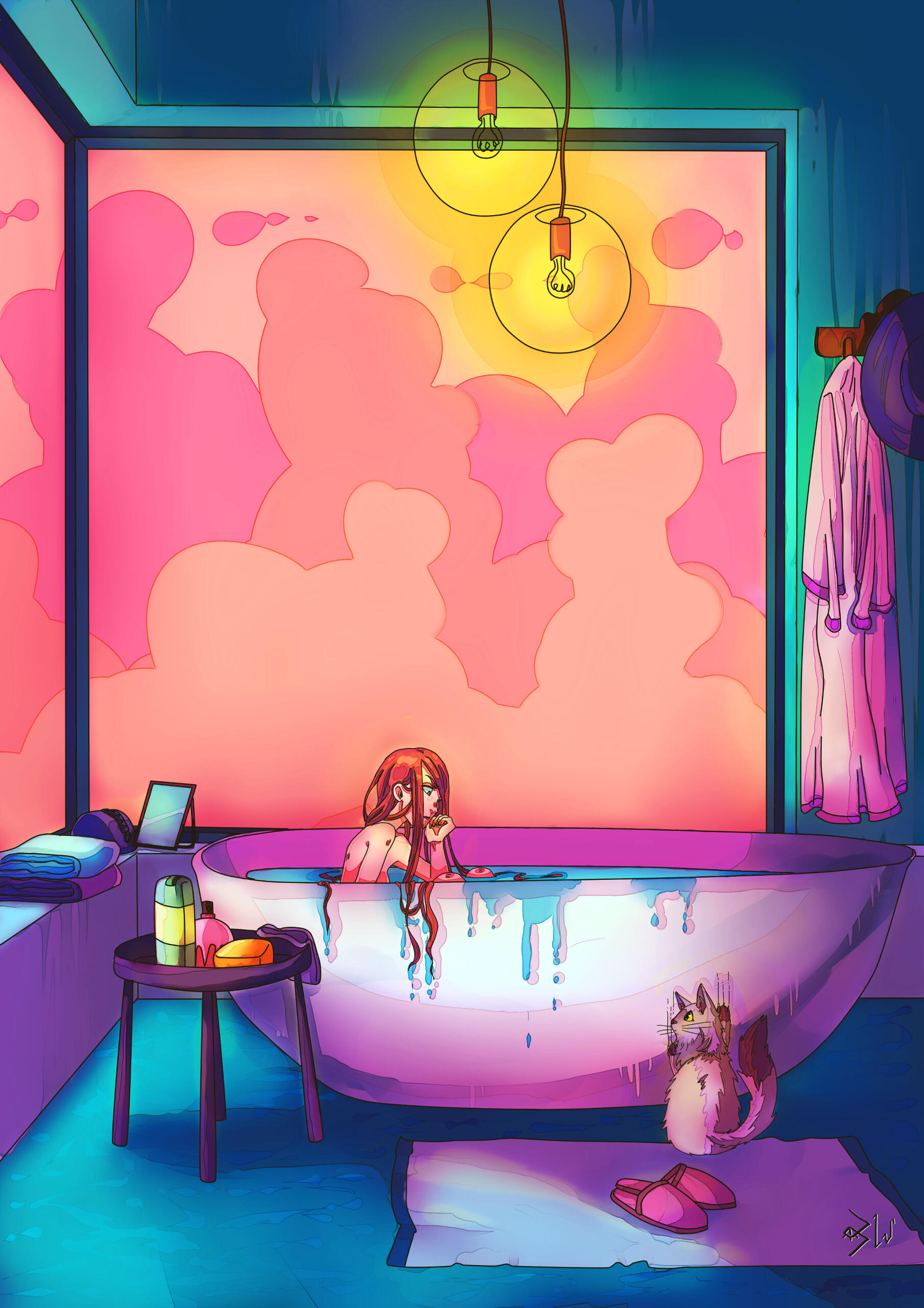 I’d say my artistic universe revolves around a modern fictional world filled with paranormal and magical events. I also enjoy playing with bright color accents to enhance the emotions conveyed by my characters.