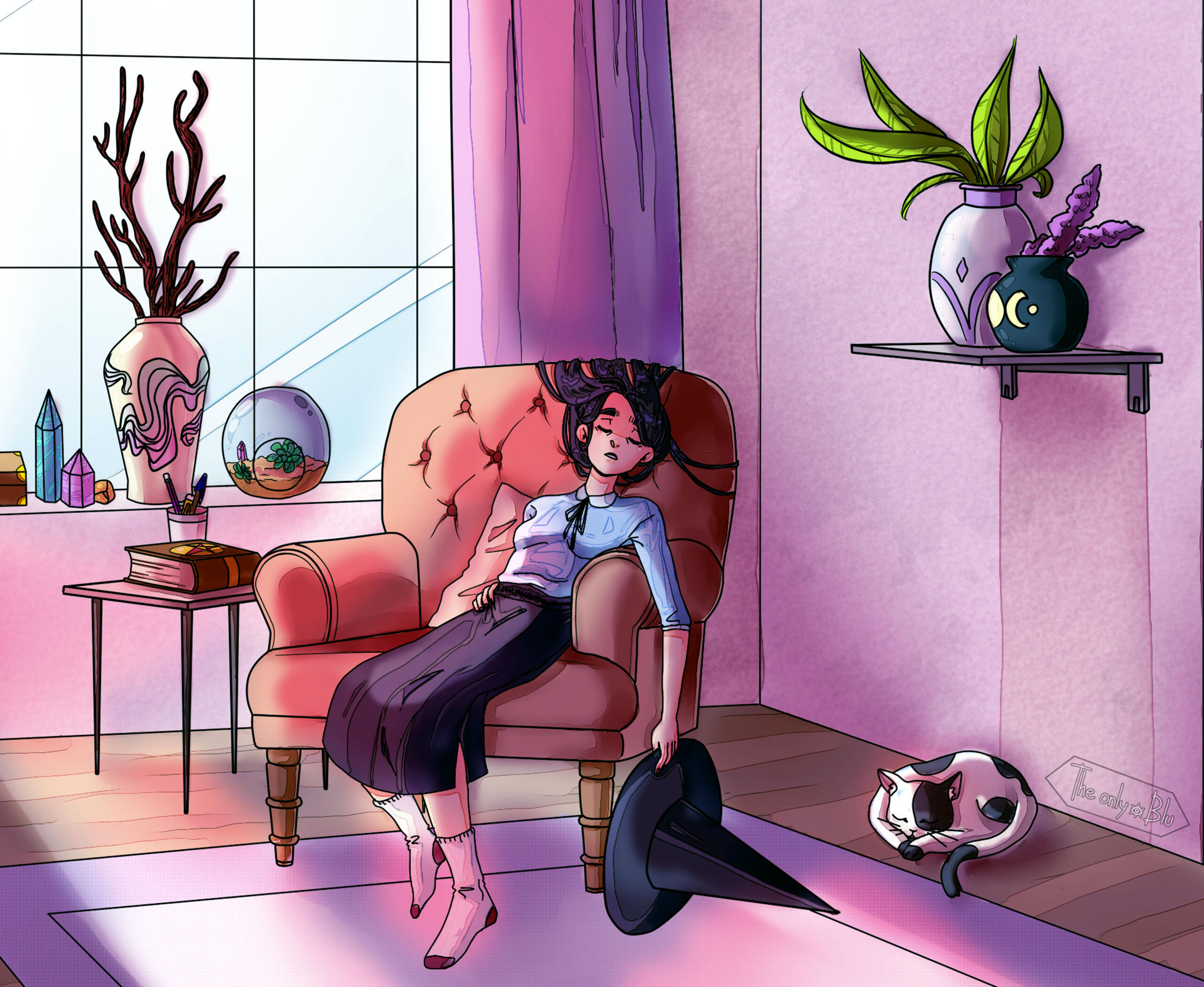 My biggest love are classic 2D animation, like Disney and Ghibli as well as the japanese pop/subculture ♡ I’m also reading a lot of Franco-Belgian comics and mangas. My favorite settings are fantasy worlds, modern universes with a touch of paranormal or magic, and anything involving witches.