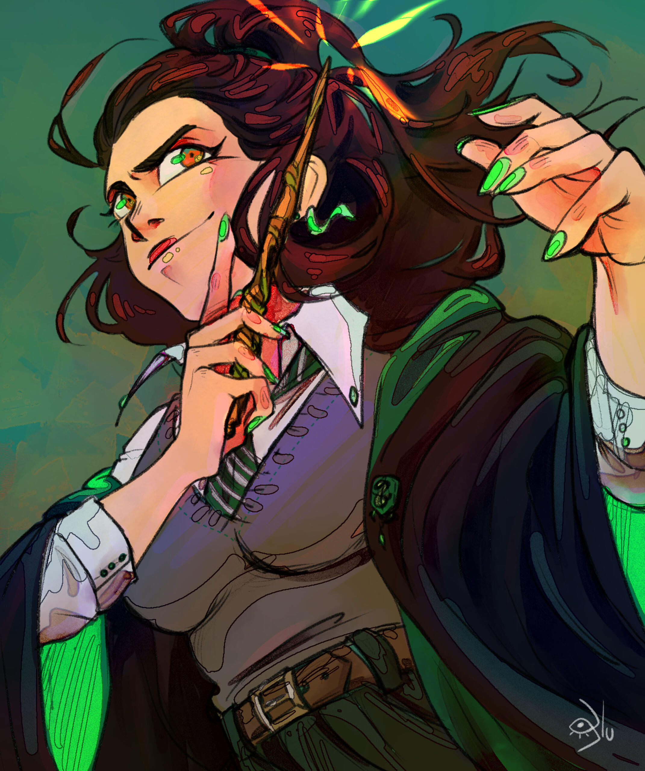 I love designing characters and humanoids. My favorite genre where my own characters evolves are Urban/Modern fantasy. I have two main artistic moods: paranormal/creepy themes with pops of color or a very pastel, cute, and cozy atmosphere! Oh, and witches—owo.